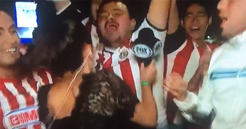 María Fernanda Mora se encontraba en medio de dos aficionados, cuando llegó otro a abalanzarse detrás de ella mientras festejaba.