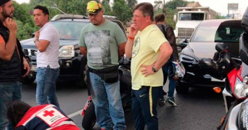 El técnico de las Águilas del América auxilia a un motociclista después que éste dio un roce al auto del estratega