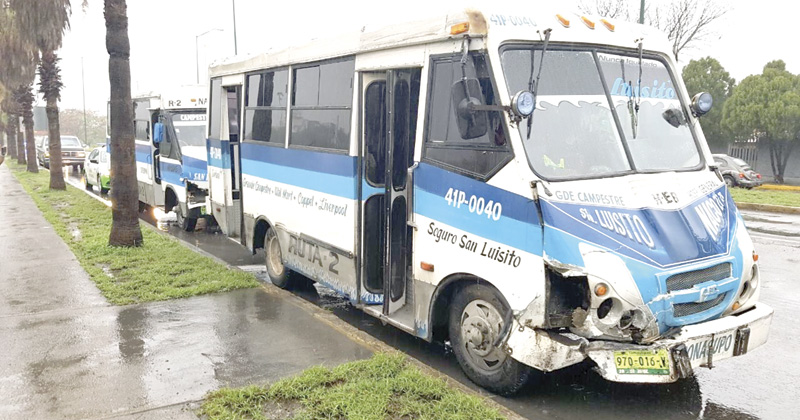 CIUDAD VICTORIA, Tamaulipas.- Dos pasajeros de un microbús resultaron golpeados después de que este se estrelló en la parte trasera de otro camión de transporte urbano que momentos antes también había chocado.
