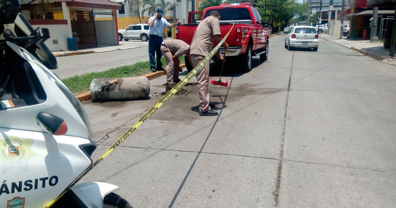 Cae tanque de gas de una camioneta