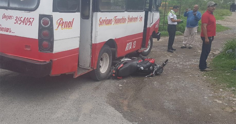 El chofer de un microbús realiza una mala maniobra y provoca que el motociclista se estrelle