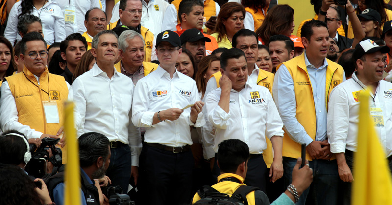 En la explanada del Monumento a la Revolución, el candidato del Frente se codeó con los dirigentes del PRD y de las corrientes internas, en un mitin donde evitó mencionar a Morena o a Andrés Manuel López Obrador