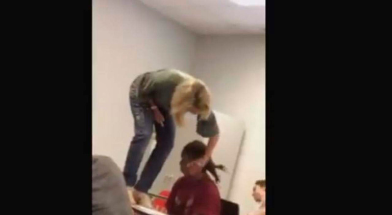 Maestra despierta a un alumno a patadas