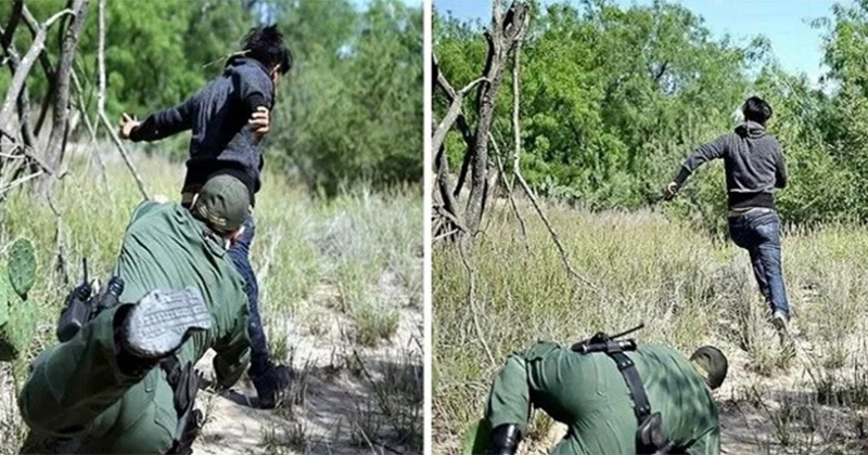 Un agente de la Patrulla Fronteriza perseguía a un hombre que cruzó de manera ilegal la frontera México-Estados Unidos, cerca de Mcallen, Texas.