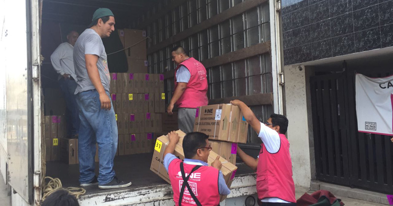 El 07 distrito del Instituto Nacional Electoral, recibió el material no custodiado para la elección del 1 de julio.