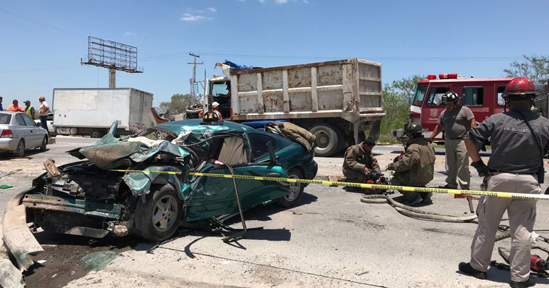Alumnos de la UTM ingresan graves al IMSS porque se les atravesó un camión de volteo por la carretera a Reynosa.