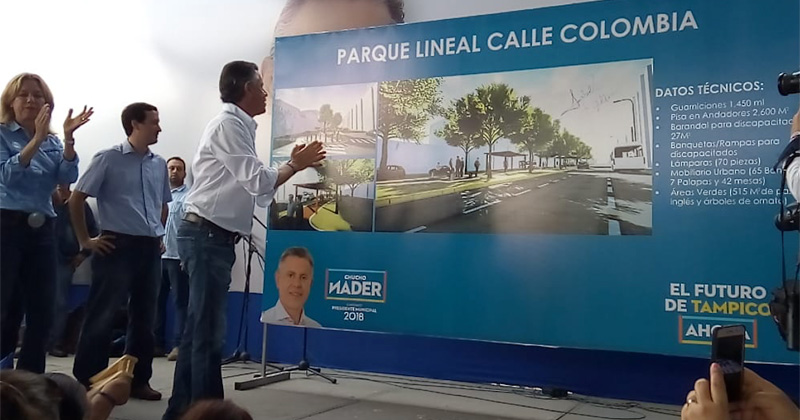 En lo que fue su primer acto oficial masivo de campaña, aseguró que construirá un parque lineal en la calle Colombia en la colonia «La Borreguera»