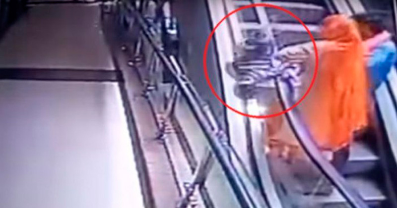 El esposo le pidió a la madre hacerse un autorretrato mientras subían por las escaleras