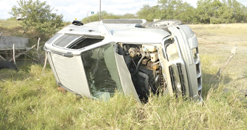 MATAMOROS, Tamaulipas.- Aparatosa volcadura se presentó en la carretera a Victoria por parte de conductor de camioneta Tracker que sobrevivió al percance y se dio a la fuga.
