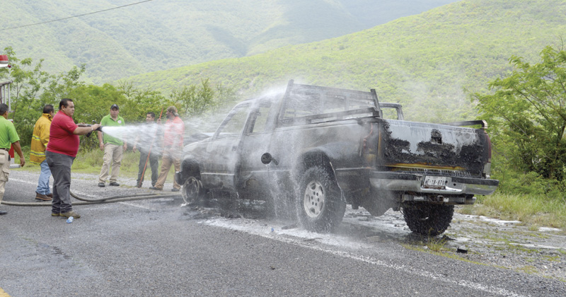 Un cortocircuito acabó con la camioneta en la que viajaba una familia en la carretera vieja a Jaumave a la altura del santuario del Caminero