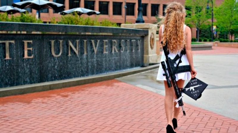 MÉXICO. “Ahora que me he graduado de Ken State, puedo finalmente ir armada al campus. Debí hacerlo de estudiante, sobre todo porque cuatro estudiantes desarmados fueron asesinados por el gobierno en este campus. #CampusCarryNow”. Es el tweet de Kaitlin Bennet, estudiante recientemente graduada de la Universidad de Kent State.