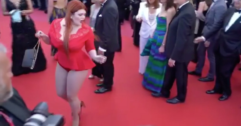Modelo se queda sin falda en la alfombra roja de Cannes