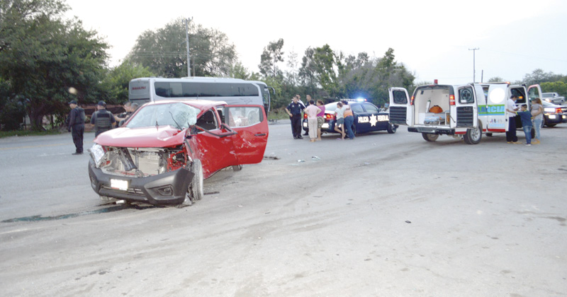 Lujosa camioneta se incorpora a la cinta asfáltica y es impactada por un autobús de pasajeros, resultando un tercer vehículo dañado en el kilómetro 35, de la carretera a Monterrey