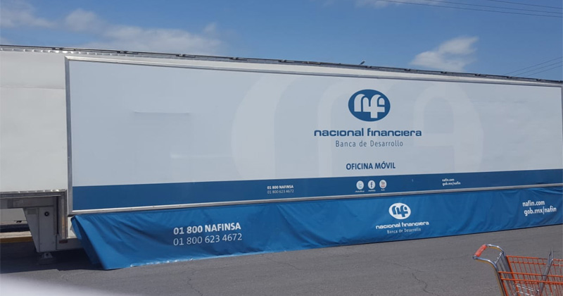 Esta mañana se instalo el modulo móvil de Nacional Financiera para ofrecer sin costo alguno cursos y talleres de desarrollo empresarial.