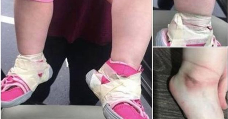 Pegan con cinta adhesiva los zapatos a un bebé