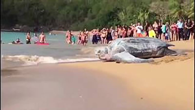 Bañistas quedan impactados por aparición de tortuga ‘gigante’ en playa