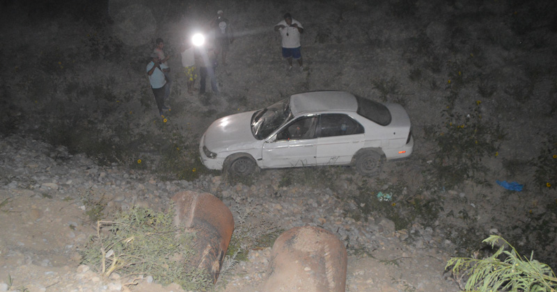 Aparentemente por el exceso de velocidad, el conductor del vehículo Honda pierde el control y se precipita sobre el río San Marcos, de una altura de aproximadamente ocho metros terminando volcado