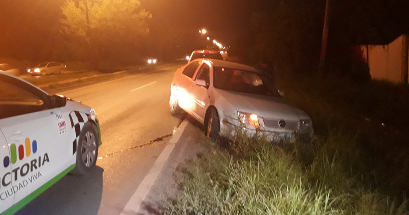 Tremendo susto se llevó el conductor de un automóvil al brincar camellón a toda velocidad y terminara con las llantas destrozadas en el libramiento “Emilio Portes Gil”
