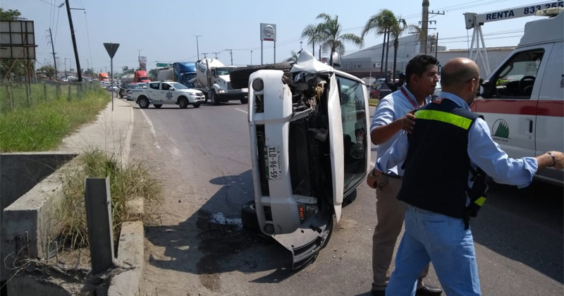 El percance se registró a las 11:20 horas a la altura del kilómetro uno, un vehículo Nissan March que era desplazado de sur a norte chocó por alcance contra el camión.