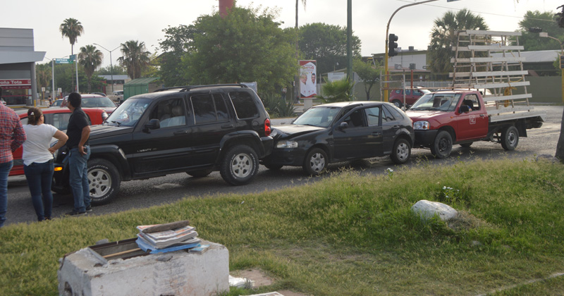 A un vehículo lo hicieron sandwich al ser impactado por alcance por otro en el 16 Adolfo López Mateos