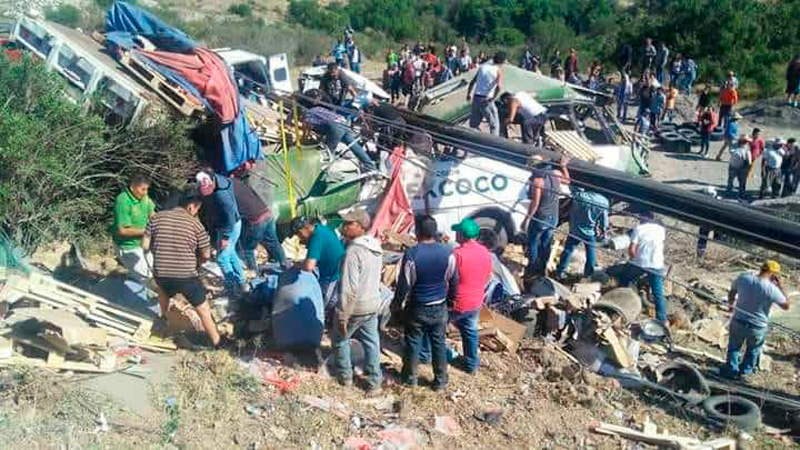 Un fuerte choque entre un autobús y un camión de carga dejó un saldo de por lo menos 10 personas sin vida sobre la carretera Calpulalpan-Texcoco