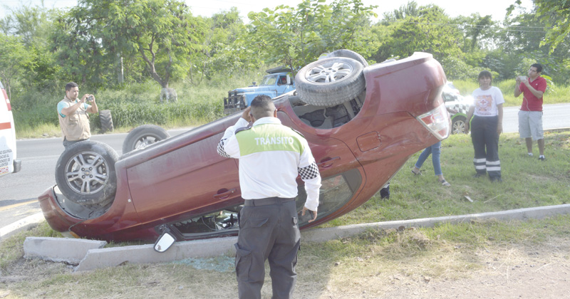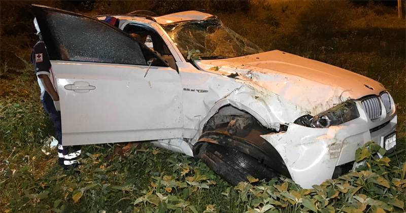 Se desplazaba a exceso de velocidad en su vehículo cuando se le atraviesa otra unidad perdiendo control para terminar con las llantas hacia arriba en el libramiento Naciones Unidas.