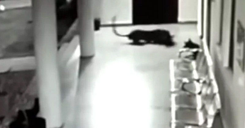 El felino se dio inmediatamente a la fuga después del contraataque de la madre.