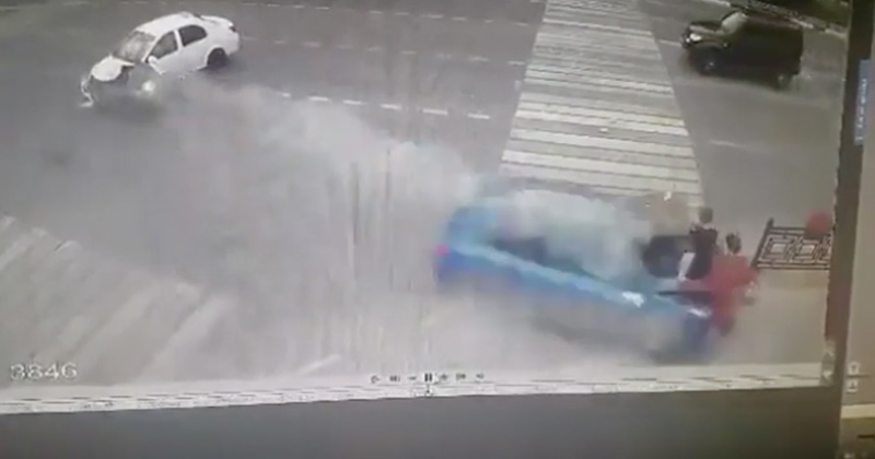 Un conductor que ignoró la luz amarilla del semáforo chocó contra otro vehículo y atropelló a tres jóvenes en Moscú