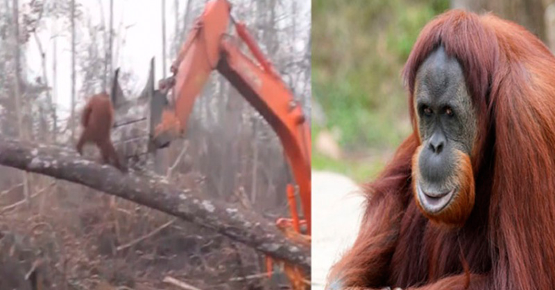 Orangután enfrenta a excavadora por intentar defender su hogar