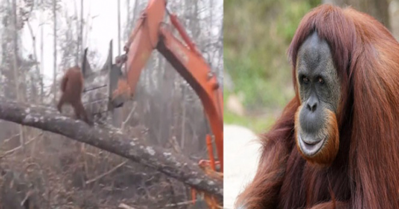 Orangután enfrenta a excavadora por intentar defender su hogar