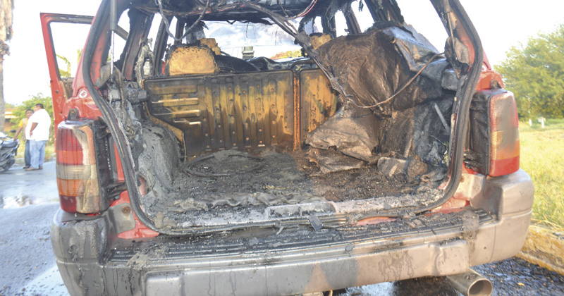 Fuego arrasa con camioneta