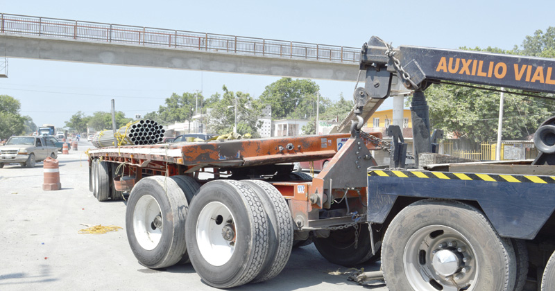 Se accidenta tráiler con 30 toneladas de tubos de acero