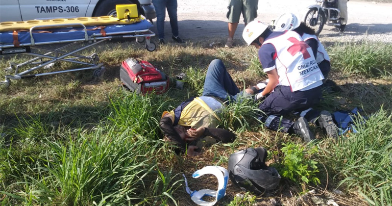 Técnicos en Urgencias Médicas de la Cruz Roja fueron solicitados, así como una motobomba de bomberos debido a que la motocicleta de labor herido estaba en llamas.