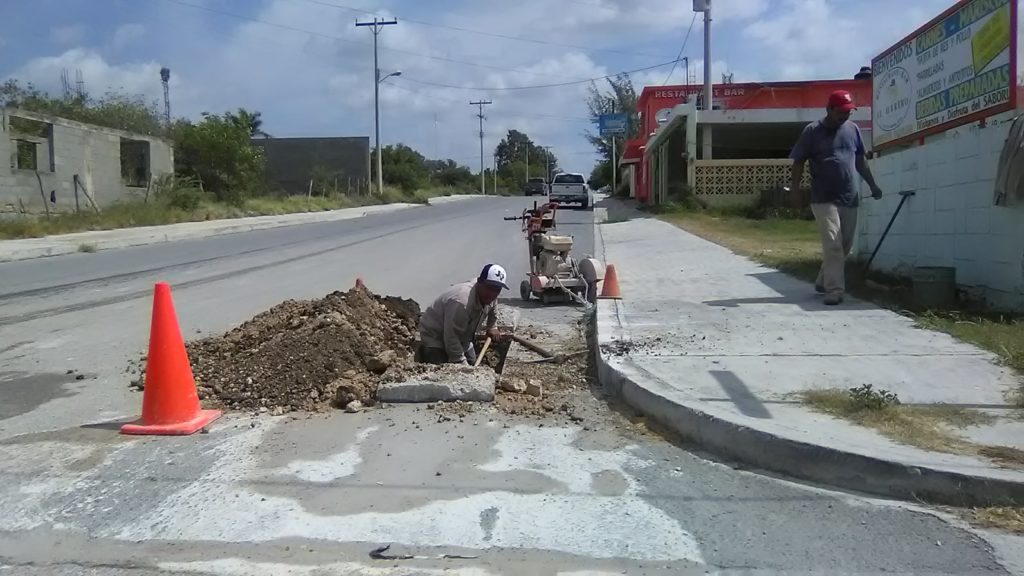 En la calle Constituyentes del 57 y Abasolo de la colonia Bella Vista Sur, fue donde se detectó la presencia de los empleados de esta dependencia realizando los trabajos de reparación de un tramo de tubería que estaba dañada.