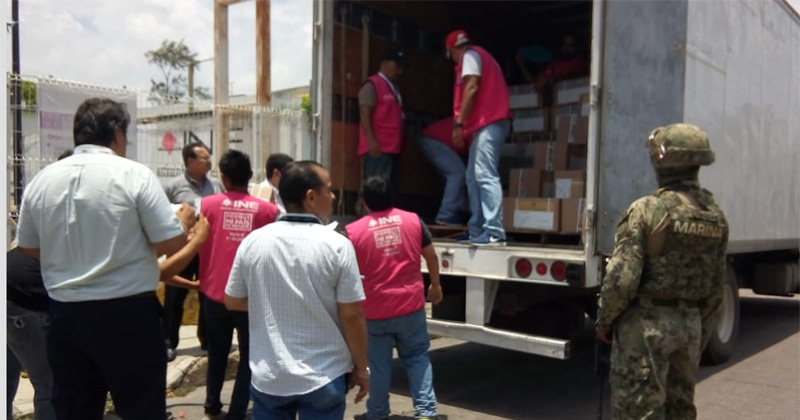 Un total de 313 mil 891 boletas para la elección presidencial llegaron esta tarde a la Junta Distrital Ejecutiva 08 de Tampico.