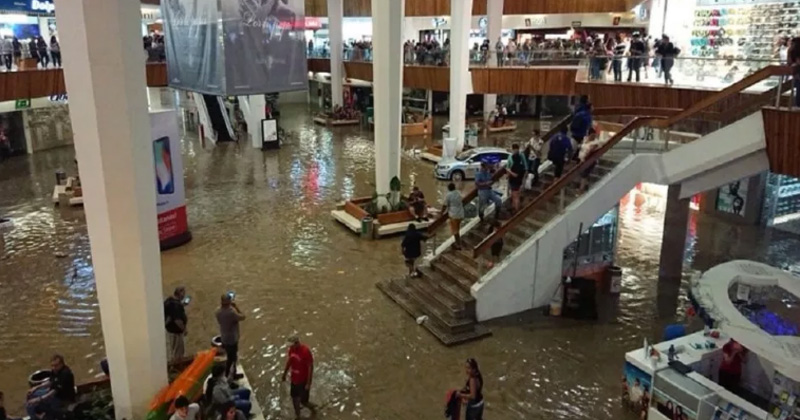 Tormenta inunda plaza comercial y tren ligero en Guadalajara