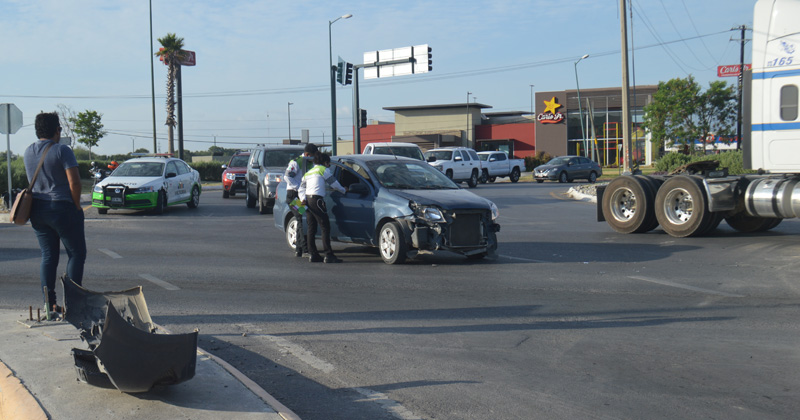 CIUDAD VICTORIA, Tamaulipas.- Una vez más en los cruces que hay en la rotonda que van a la carretera a Monterrey fueron escena de un fuerte accidente automovilístico que dejó daños materiales en por lo menos 70 mil pesos.