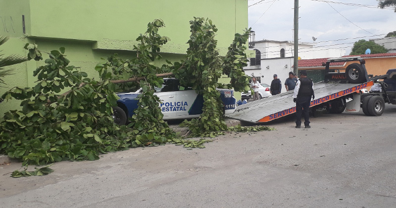 Además, partieron un enorme árbol que cayó encima de la patrulla, sin que afortunadamente, les causara lesiones.