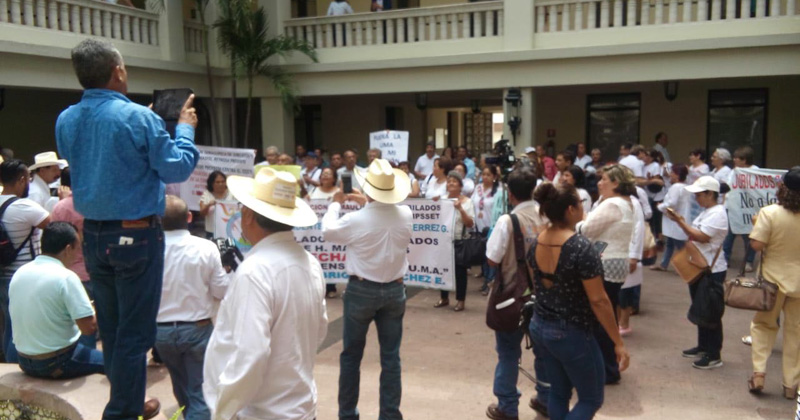 Decenas de jubilados del Issste solicitaron el apoyo del gobernador del estado para retirar la Unidad de Medida y Actualización en el pago de sus pensiones.