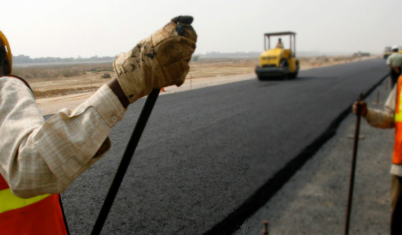 Obreros vierten asfalto sobre un perro que dormía