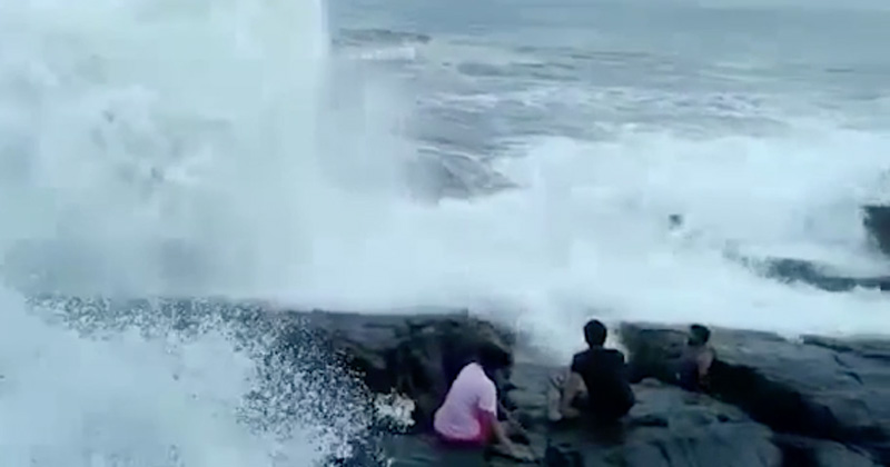 Tres turistas fueron impactados por una gran ola al oeste de India. Mientras dos fueron empujados a tierra, el tercero fue arrastrado al mar