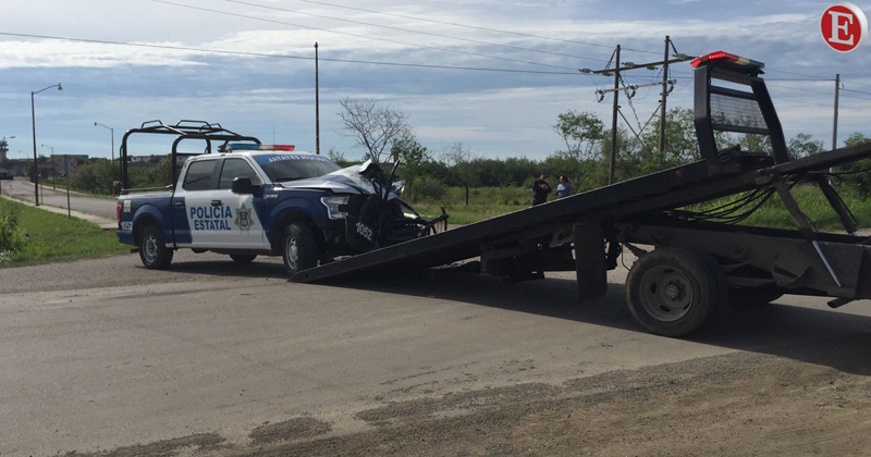Una patrulla de la Policía Estatal colisiona contra la plataforma de un trailer, en las inmediaciones de un camino vecinal, en Estación Colonias, en Altamira.