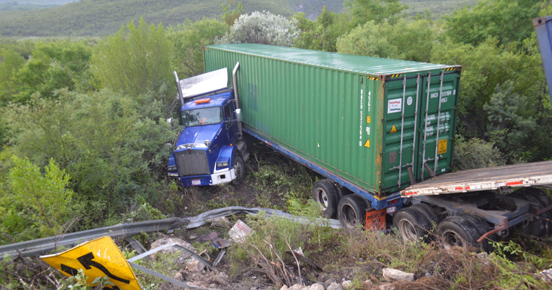 El tráiler doble remolque que tripulaba se va a un barranco en el tramo de la carretera Jaumave-Palmillas