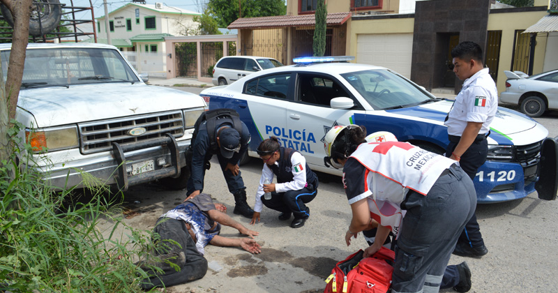 CIUDAD VICTORIA, TAMAULIPAS.- Un hombre de la tercera edad que presentaba diversas lesiones en la cara, brazos y piernas fue auxiliado por técnicos en urgencias médicas, después de que vecinos de la colonia Libertad denunciaron los hechos.