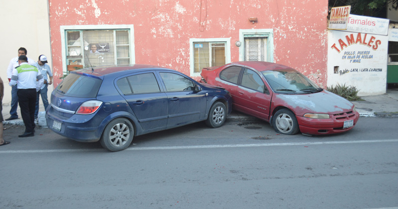Una camioneta se «vuela» el alto en el 21 Allende y se estrella contra un vehículo, cuyo conductor pierde control y se impacta contra una unidad estacionada
