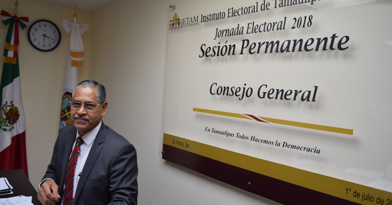 El Presidente del IETAM, Miguel Ángel Chávez García destacó que en el cierre de las Casillas electorales en el Estado, no hay reportes de violencia.