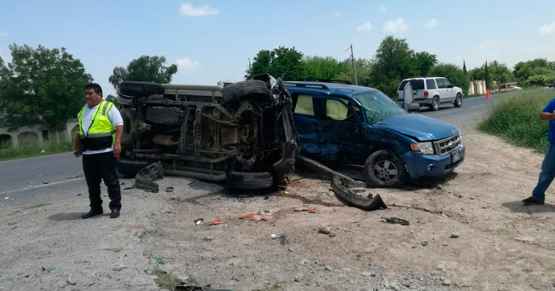 Fue en el kilómetro 30 de la vía, a la altura del ejido Santa Librada que se registró el percance cuando una Ford tipo Freestar color azul, placas de Texas, circulando de norte a sur invadió carril y se estrelló de frente con otra camioneta en marcha.