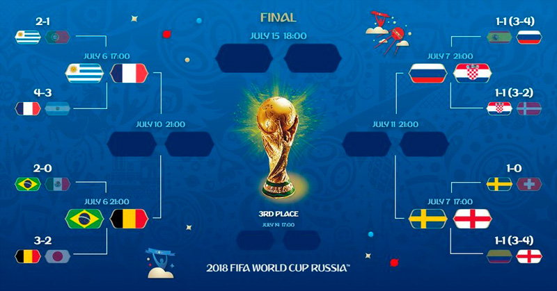 Así se jugarán los cuartos de final de Rusia 2018