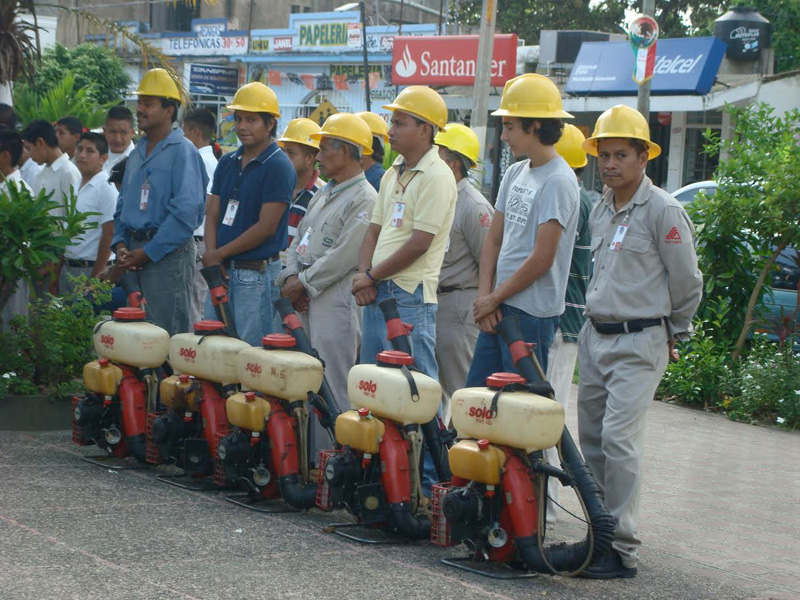 El personal de fumigación debe portar el uniforme color caqui ,su identificación original y su casco