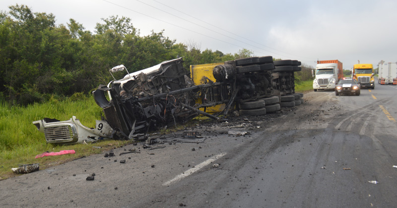 Un tráiler cargado con toneladas de carbón maromea a la altura de Villagrán y a los pocos minutos otra pesada unidad que transportaba láminas de acero se estrella; los operadores están lesionados